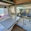 La Autentica Volkswagen T3 California, la furgoneta mas icónica de la historia, famosa por su aspecto surfer, completamente equipada en su interior con nevera trivalente, fogones, dos camas, techo elevable con apertura y mosquitera, cuenta con dirección hidráulica, lo que la hace aun mas fácil a la hora de conducir, sin perder el estilo retro.